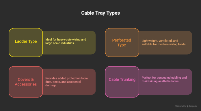 Compared to traditional conduit systems, cable trays are economical. Indmark offers multiple options like ladder trays for heavy loads, perforated trays for ventilation, and covered trays for dust protection, ensuring solutions for every requirement.